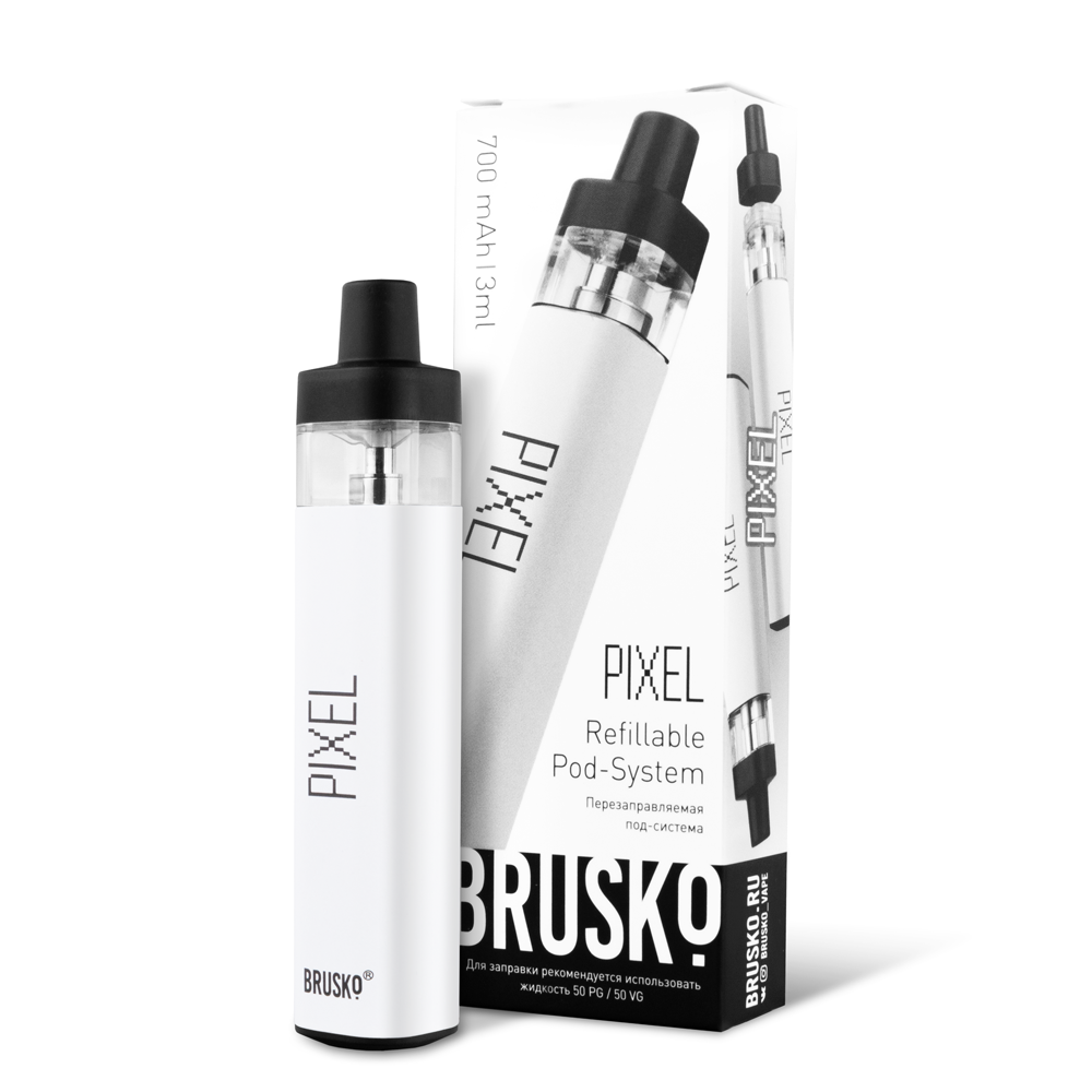 Перезаправляемая Под-Система Бруско Пиксель (Brusko Pixel) 700 mah, Белый - купить в Норильске